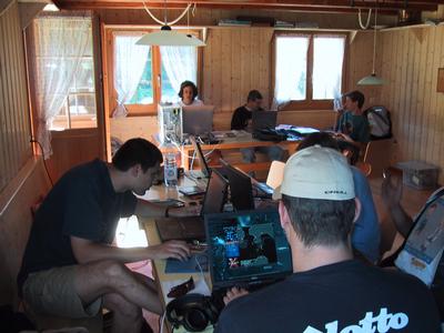Sogar das Wetter machte mit und erfreute uns mit strahlendem Sonnenschein, was einige LugBE Mitglieder dazu bewegte die Netzwerk-Sessions auf die Terrasse zu verlagern. Fleissig wurden Mp3's und sonstige Dateien getauscht, Gegner beim Xpilot zur Strecke gebracht, oder die neusten Kompilierbefehle ausprobiert. Tatsächlich haben wenige sogar den Laptop ganz abgeschalten und eine kurze Wanderung gemacht. Peter hat sich das ganze mit dem Gleitschirm von oben angeschaut... Bilder und vieles mehr sind auf Peter's Homepage zu finden.