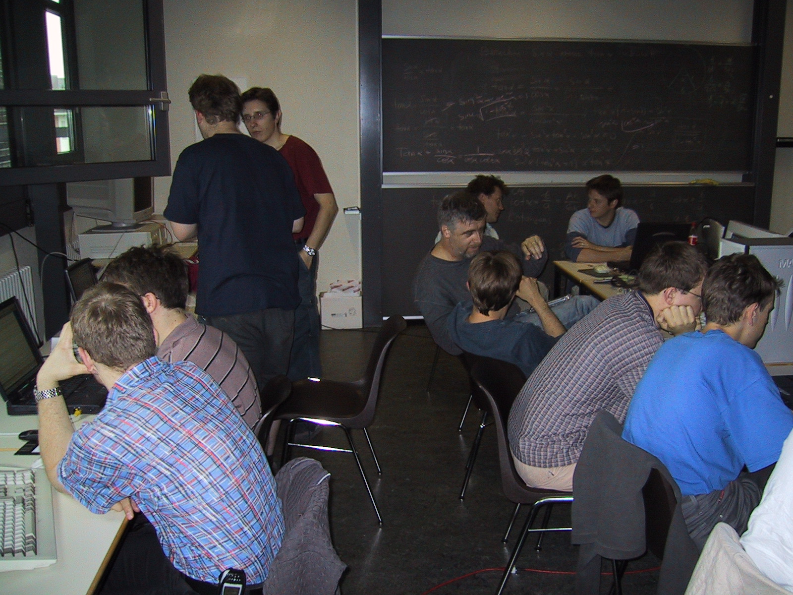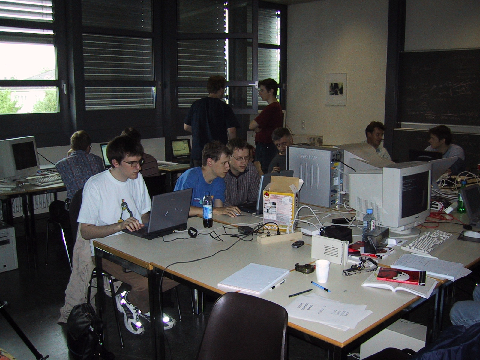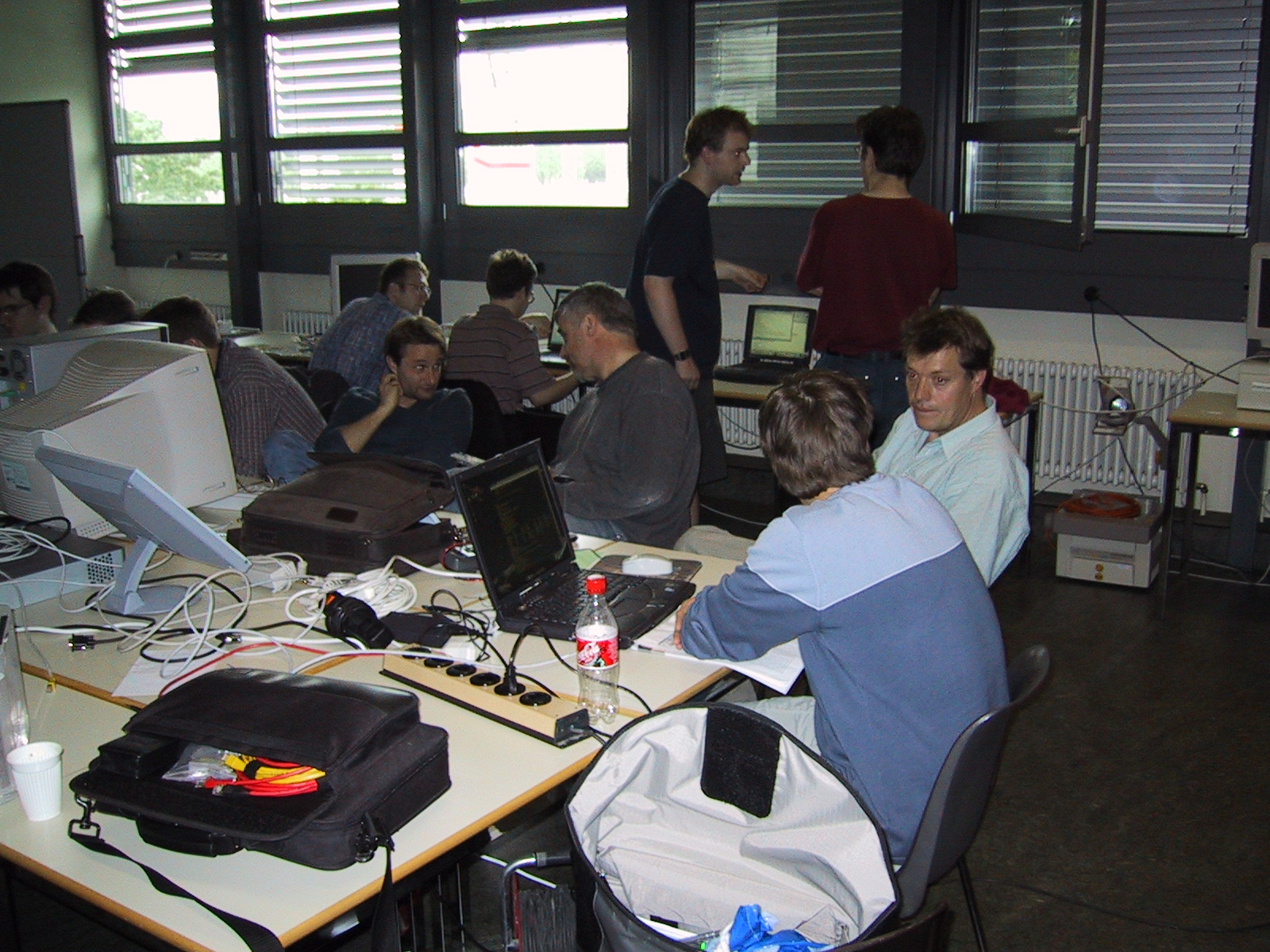 Install-Event vom 8. Juni 2002 an der HTA BernAm frühen Samstag Morgen etwas nach 9.00 Uhr liefen die ersten LugBeler im Zimmer im 3. Stock der HTA Bern für die Vorbereitungen ein. Tische wurden zusammengeschoben, Strom- und Netzanschlüsse vorbereitet, das Schulzimmer in ein Rechnerraum umgebaut. Nachdem der Router- und DHCP-Server aufgesetzt waren, stand dem Event nichts mehr im Wege. Nach und nach sind weitere GNU/Linux-Begeisterte eingetroffen, alles in allem etwa 15 Leute. Neue GNU/Linux-Installationen wurden in Angriff genommen, bestehende auf den neusten Stand gebracht. Auch für eine Mittagspause war kurz Zeit, Kebap, Mineral und ein, zwei Atemzüge frische Luft. Nach der Verpflegung wurde weiter installiert, konfiguriert, aktualisiert und diskutiert. Um ca. 17.30 Uhr begannen die Aufräumarbeit und kurz nach 18.00 Uhr war der Rechnerraum wieder in ein Schulzimmer umgebaut. Alles in allem für die Teilnehmer ein gelungener Anlass, der eine Wiederholung wert ist. Wir danken der der Hochschule für Technik und Architektur Bern für die Benutzung der Räumlichkeiten und den Internet-Anschluss und Tobias für die Organisation. Die Artikel dieser Seite stehen unter Copyleft ihrer jeweiligen Autor*innen. Ihre Nutzung, Wiedergabe etc. untersteht den Bedingungen der GNU Free Documentation License (http://www.gnu.org/copyleft/fdl.html), wo nicht explizit anders vermerkt. |