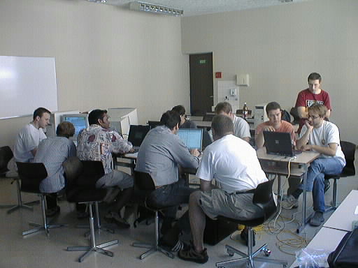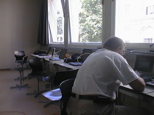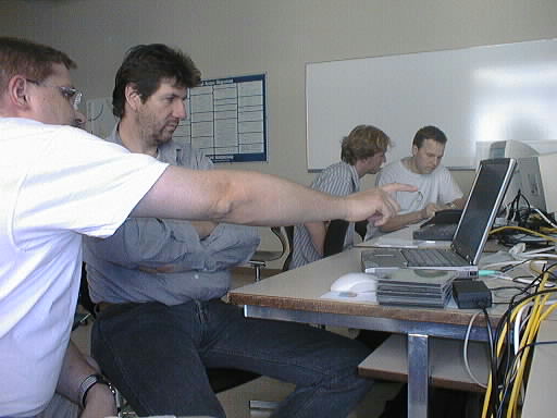 Gion, sein Laptop und die Pause ... ![]() Grossraumbüro: "Hat wer meinen Treiber gesehen ...?" ![]() Jetzt wird's ernst. Mathias im Kampf gegen /lib/libnss_db.so.2 ![]() Nicht zu übersehen: Frank bleibt Frank bleibt skeptisch. ![]() Cedric: "apt-get install flutschdiboing" - Debian in Hochform. ![]() Werner, Markus, Erich: "Waaaas ... kein Touchscreen?! ![]()