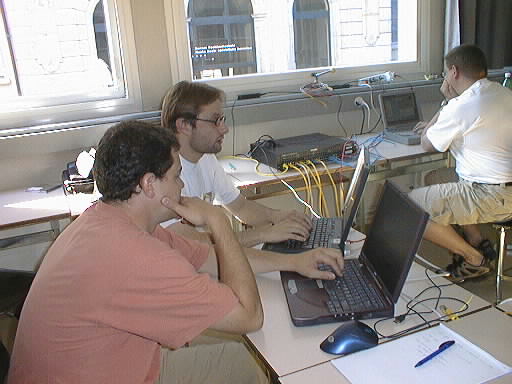 Install-Event vom 21. Juli 2001 an der HTA BielAnwesend: ca. 15 Leute und ebensoviele Maschinen Die Konfigs vom technischen Netzwerk-Setup gibts hier: lost+found ![]() Patrik, Amara und Jean-Marc: "Da war doch noch was ..."
