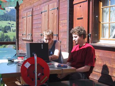 Im Gemeinschaftsraum fanden wir sie, still Notebooks und Netzwerk einrichtend...