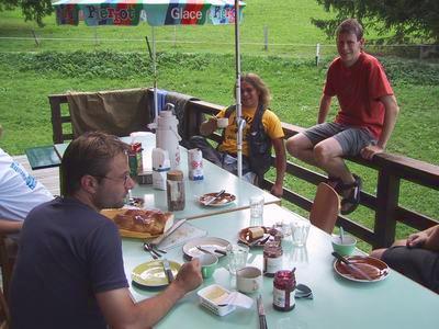 Mit vereinten Kräften passierte dies schnell und locker, die Essensvorräte wurden sinnvoll verschenkt (der letzte Rotwein an den Toiletten-Putzer, das letzte Fleisch an mich -"Wenn Du es nicht essen magst dann wenigstens Cora"), die Autos beladen, und plötzlich war das Wochenende beendet. Noch schnell bezahlt: Die Hüttenmiete übernahm die LugBE, Fr. 45.- für 3 Tage gutes Essen war auch günstig, auch das stimmte perfekt. Auf der Heimfahrt gab es noch Diskussionen, ob wir nicht mehr solcher Anlässe veranstalten wollen; das ist jedoch sehr schwierig, da hier eindeutig Qualität vor Quantität stand.